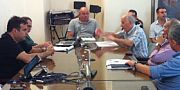Una rappresentanza dei lavoratori del petrolchimico di Porto Torres e dal presidente di Legambiente Sassari, Massimo Fresu, che questa mattina hanno incontrato la commissione ambiente del Comune di Sassari