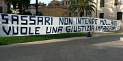 «Sassari non intende mollare, vuole una giustizia imparziale». Questo il testo dello striscione esposto nel pomeriggio di oggi, durante la manifestazione che si è tenuta oggi in Piazza Castello