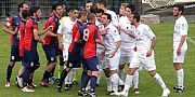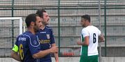 I bianchi galluresi raggiungono il parziale pareggio alla fine del primo tempo con una rete del giovane Aloia, ma subiscono il 2-1 dei padroni di casa nel quarto minuto di recupero