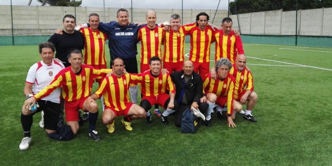 C'erano ex giocatori con i capelli bianchi, altri che i capelli li avevano persi del tutto, taluni in forma fisica strepitosa, altri appesantiti ma ben riconoscibili, uniti tutti e orgogliosi della maglietta che indossavano , la storica casacca giallo rossa a strisce verticali, cimelio che la famiglia di “Ciu Piero” ha prestato per un giorno a Vittorio Dalerci (lo storico massaggiatore), che nello spogliatoio le ha distribuite alla vecchia maniera.