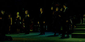 Nella foto: I protagonisti sul palco del Verdi