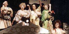 Questa sorta di coproduzione sardo-croata (oltre al regista, adattamento testo e canzoni di Tatjana Suput, musiche di Rossella Faa, coreografia di Petra Blaskovic, scenografia di Stjepan Mihaljevic, costumi di Micol Joanka Medda e, in scena, nella parte di Murrina, la moglie vogliosa del bel Cinesia, Selma Alispahic, già apprezzata in Ay Carmela del drammaturgo catalano Sinisterra), già presentata quest’estate ad Alghero, nell’anfiteatro del palazzo dei congressi, conferma tutti i suoi limiti. A parte l’imbarazzante prologo, il problema grave è che questa Lisistrata non fa ridere. Mai. La scelta di far diventare la commedia di Aristofane una sorta di commedia musicale non ha pagato, forse per l’inadeguatezza delle musiche, nonostante il grande impegno delle attrici a cantarle. Perché scappi un sorriso bisogna aspettare l’ingresso di Marco Spiga, bravissimo e perfettamente in parte nel fallocentrico Cinesia, che, finalmente, esce dell’atmosfera da musical castigato anni ’50, e ci riporta nel mondo di Lisistrata, che ha un solo centro, il sesso, ma è già passata un’ora di spettacolo. Tutto quello che c’è stato prima sono state canzoni, (chissà se Robert Raponja conosce la versione bellissima di tanto tempo fa di Garinei e Giovannini), gag che non facevano ridere dei vecchi Francesco Atzeni e Maria Grazia Bodio e i grandi sforzi di Lia Careddu-Lisitrata, senza ombra di dubbio la più grande attrice sarda, in una parte forse lontana dalla sua corde. Raponja ha cominciato a lavorare allo spettacolo prima dell’inizio della guerra in Iraq, ha continuato durante, ma forse si è fatto prendere la mano. I colori della bandiera della pace appesi alla fine nel telaio sono parsi francamente retorici e fuori luogo. Come tutta la lettura antimilitarista della commedia è parsa arraffazzonata, più dettata dall’emozione del periodo storico che da una precisa scelta d’interpretazione del testo. Testo complesso, senz’ombra di dubbio. Rappresentare Aristofane non è facile, ne sia testimonianza le polemiche su le Rane di Ronconi l’anno scorso a Siracusa, con le scenografie che sbeffeggiavano i potenti di ora rimosse in seguito a polemiche. Se non si ha il coraggio di fare Lisistrata per quello che è, un testo, forse sì, antimilitarista, ma soprattutto “il primo testo della cultura occidentale che affronti il problema dell´emarginazione femminile, senza limitarsi al lamento ´patetico´, che ribadisce le catene”, e anche una straordinaria macchina teatrale basata sulla esplicitazione paradossale del sesso come bisogno così forte da fermare le guerre, forse è meglio non fare Aristofane. Lisistrata è poco rappresentata proprio per questo motivo: è una macchina comica che ha al centro il sesso, senza mezzi termini e senza censura. Si può trasformarla in una commedia musicale, ripulirla e farla interpretare ad una grande attrice drammatica come Lia Careddu, ma non funziona. La riprova si ha quando Marco Spiga-Cinesia entra in scena infoiato con un enorme fallo dentro i pantaloni e, pur di soddisfare le sue voglie, diventa sostenitore della pace, e lo spettacolo improvvisamente si sveglia e diventa interessante, dopo un’ora di noia. Lisistrata è questo, piaccia o non piaccia a un regista croato o a qualche abbonata su con gli anni del Teatro di Alghero, scandalizzata dal seppur ripulito Aristofane del Teatro di Sardegna. Prossimo appuntamento con Io e Annie di Woody Allen.