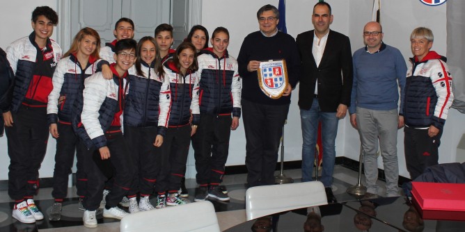 SASSARI - In attesa della partita di domani a Villacidro, ieri sera (venerdì), la Torres femminile, accompagnata dal presidente Andrea Budroni e dal direttore sportivo Francesco Muggianu, si è recata in visita dal presidente del Consiglio regionale Gianfranco Ganau nella sede sassarese di Via Roma. «Vi meritate sicuramente più di questo livello di campionato, ma lo state già conquistando sul campo – ha dichiarato l'ex sindaco di Sassari – Dal prossimo anno, sarete probabilmente in una serie un po' più adeguata, anche se io continuo a dire che la serie adeguata sia la A e che l'obiettivo debba essere quello di riconquistarla rapidamente, per ripetere i grandissimi risultati che la Torres femminile ha ottenuto negli anni passato».