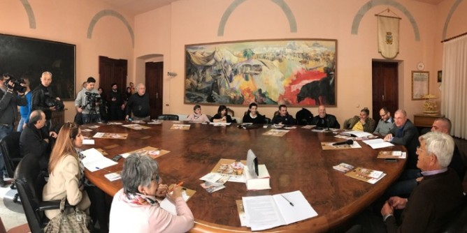 Ieri la presentazione ufficiale della manifestazione con il sindaco e presidente della Fondazione Sa Sartiglia Guido Tendas, i presidenti dei Gremi Mauro Licheri e Gianni Obino, i Componidoris Sergio Ledda e Giuseppe Sedda, il Presidente dell’Associazione cavalieri Francesco Castagna, l’Assessore alla Cultura Maria Obinu, il Direttore e il Responsabile tecnico della Fondazione Sa Sartiglia Francesco Obino e Filippo Uras.