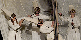 Spettacoli ogni sera in un comune diverso, e compagnie che hanno viaggiato anche per quattro giorni per giungere dal palazzo degli Zar di San Pietroburgo fino ai piccoli borghi della Marmilla. Sogni a Spazi Aperti è il più “itinerante” dei festival, e esprime questa sua propensione anche nella natura degli spettacoli, dislocati in luoghi diversi di ogni paese per sottolineare che il “centro” può essere ovunque: dipende da dove si guarda. Oppure, spettacoli che sono per definizione “itineranti”: parate, processioni, marchin’ bands, che invitano a scoprire percorsi e luoghi insoliti.