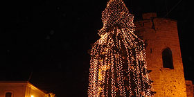 Ad accendere le luminarie, come già l’anno scorso, è stato il sindaco di Alghero Marco Tedde. Mentre nel 2007, il primo cittadino aveva dato il via ai festeggiamenti con un telecomando, stavolta è salito su una scala appoggiata direttamente sul tronco di uno dei simboli più classici del Natale.
