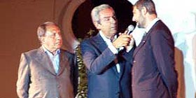 Mattatori della serata Nicola Nieddu, ideatore di questa quarta edizione, con la splendida Federica Moro. Entrambi guidati sulla ribalta dall’estro dell´inossidabile Daniele Piombi, evergreen doc. Nel camerino allestito sul retro del palco, pochi attimi prima del via, ci confida a ruota libera: “..Ho tenuto a battesimo questa manifestazione presentando tutte quattro le edizioni. Non aspetto che presentare la prossima. Ci sono ospiti sportivi e dello spettacolo di primo piano: da Binarelli a Califano. Doveva esserci anche Giorgio Tosatti. Gli impegni di redazione e delle prossime olimpiadi, lo hanno trattenuto. Spero di averlo il prossimo anno. A lui, il mio saluto on line, tramite il vostro giornale…” - - Impegni per la prossima stagione televisiva: ci anticipa qualcosa?