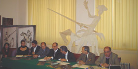 Gli spettacoli delle imminenti festività sono stati presentati, dal commissario dell’A.A.S.T., dott. Giancarlo Muntoni, alla presenza del coordinatore Mulas, del dott. Sari, dell’Ass. al Turismo Angius e del Vice Sindaco Piras, che, insieme agli artisti e alle associazioni coinvolte, ha illustrato l’evento che sancirà il passaggio di consegne tra 2004 e 2005. Oltre alle notizie, che erano già state diffuse nei giorni scorsi, sono stati finalmente svelati i nomi dei gruppi e degli artisti che avranno il compito di regalare alla città ancora una volta un elettrizzante momento di festa. Le manifestazioni si svilupperanno tutte attorno al tema portante che, come già segnalato, sarà la “Follia”. Saranno quindi l’estro e la genialità dell’arte e della cultura a sommergere Alghero dal dieci dicembre fino all’otto gennaio. Follia e bellezza saranno inoltre gli argomenti che legheranno, attraverso un elegante collegamento, il poeta algherese del XVI secolo, Antonio Lo Frasso, e il grande Miguel de Cervantes. A decantare la bellezza delle dame algheresi, celebrata da Lo Frasso, saranno dei preziosi disegni dell’artista di fama mondiale Pinuccio Sciola, il quale proporrà anche la sua personalissima e pregiata interpretazione dei personaggi del Don Chisciotte, intitolata “El Nadal de Don Quijote”. Ma l’Alguer non sarà abbellita unicamente dagli allestimenti dello scultore delle “Pietre Sonanti”. Il fascino del centro storico sarà esaltato dai decori studiati ed elaborati da Mariano Corda, coinvolto nell’arredo scenico della città, come anche nelle scenografie del teatro di strada della Compagnia di Gianni Sartirana.