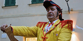 Nella foto: il "banditore" nel centro storico di Alghero
