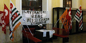 Nella foto: la protesta dei lavoratori Geas in stazione a Sassari