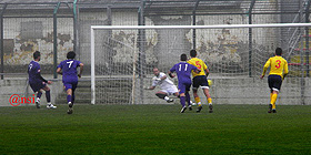Nella foto: il rigore del 3 a 0 realizzato da Maniero del San Teodoro