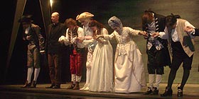 SASSARI – Elogio della dissolutezza, menzogna, vizio. Pratica di trasgressione, fra bische, bugie e passioni vissute nelle maschere goldoniane della Serenissima di metà Settecento. Un’allegoria grottesca della passione umana, vecchia quanto nuova, antica quanto attuale: il gioco. Un parterre affollato in ogni ordine di posto, incornicia un palco ricco di presenze al Teatro Verdi di Sassari, lunedì trentuno gennaio. Seconda replica sassarese de “Il Giuocatore” commedia in due atti, scritta nel 1750 da Carlo Goldoni. Il quinto spettacolo del cartellone CEDAC di Sassari (presentato in cinque repliche anche all’Alfieri di Cagliari), è realizzato dalla Compagnia del Teatro Eliseo di Roma. Con la regia di G. Patroni Griffi e la partecipazione dell’eccellente Urbano Barberini, un cast di giovani promesse della prosa italiana, vergate dalla firma di una stella della Commedia d’autore: Franca Valeri. Nei panni della vecchia Gandolfa, ricca nobildonna veneziana, andata negli anni, ma non nell’animo, desideroso di uno scatto d’improbabile gioventù, tiene la scena con passo deciso e autorità soave. L’interpretazione leggera offerta dall’attrice milanese, non tradisce l’impegno del testo e la veneranda età che avvolge intorno alla sua persona, la trama della vicenda, ricca di menage e angoli surreali. A trenta minuti dall’apertura del sipario, entriamo nel camerino della signora Valeri, che impegnata da un complicato trucco, al pari di tutti i suoi colleghi, non esita a concederci brevi e precise battute. Le chiediamo: cosa la spinge a salire sul palco e recitare questa figura di Goldoni? “…Lo studio del personaggio…”, ci risponde quasi meravigliata di una domanda così ovvia. Sorride soddisfatta quando le chiediamo un bilancio della trasferta sarda. “Sono rimasta contenta del pubblico, molto contenta…” e sbilanciandosi sulle sorti del teatro italiano: “Ci si augura che migliori e s’incentivi l’iniziativa privata…”. Sul palco le scene s’intrecciano veloci, animate dalle peripezie del maldestro, inaffidabile compulsivo Florindo Aretusi, giovane rampollo dell’aristocrazia lagunare. Le cui residue belle speranze sono legate più alle premure del fido Brighella, che ai reiterati quanto evanescenti propositi d’abiura nei confronti del gioco d’azzardo. Le gesta compiute, nell’intento di recuperare i dissesti prodotti dalle dissennate puntate, degenereranno sino a clamorosi tradimenti nelle passionali relazioni amorose lecite o clandestine, e gesti delittuosi che ne comprometteranno irrimediabilmente il blasone e l’onore. Sulla ribalta, nei costumi d’Aldo Terlizzi, la conferma autorevole di Urbano Barberini (Florindo) sostenuto da una felice interpretazione della bella B. Di Bartolo (l’amata Rosaura). Importanti e ben recitati Pantalone, Brighella, Beatrice vestiti da P. Bessegato, F. Acquaroli e P. Abella. Nella nutrita compagnia, la singolare comparsa di Tiburzio (giocatore di vantaggio), unico elemento “stonato” suo malgrado. Per un’improvvisa indisposizione di Daniele Ferrari, un addetto allo staff lo ha sostituito, leggendo il copione in giacca e pantalone. Un tocco estemporaneo compreso dal pubblico, ripagato da uno spettacolo alto, arricchito dalle gag di Fabio Rusca (Pancrazio, amico solidale di Gandolfa), stoccato dalle sferzate ilari di Franca Valeri. Per lei l’ovazione finale del pubblico divertito.
