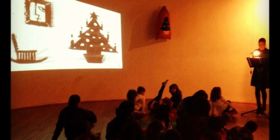 Nella foto: un momento di Be e del reading "L'abete di Andersen" con Chiara Murru e i disegni animati di Vincenzo Zichella di Scarabokkio