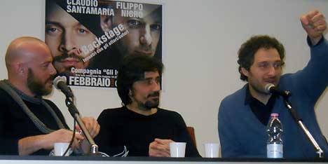SASSARI – Grande successo di partecipazione dell’iniziativa culturale “Backstage: Incontri con attori-autori, in una sala gremita di studenti universitari ma anche estimatori del buon teatro, dove si è tenuto l’appuntamento sassarese tra gli attori tanto attesi Claudio Santamaria, Filippo Nigro, Massimo De Santis e Azzurra Antonacci. I quattro interpreti di "Occidente Solitario", in scena al Nuovo Teatro Comunale di Sassari e in replica al Teatro Massimo di Cagliari, si sono mostrati molto disponibili con il pubblico. La commedia nera liberamente tratta dall’opera di Martin Mcdonagh, regista, scenografo e commediografo inglese, vede i due attori Santamaria e Nigro nella veste di due fratelli coltelli, che si odiano, poi trovano un punto d’incontro nell’odiare l’intera umanità.