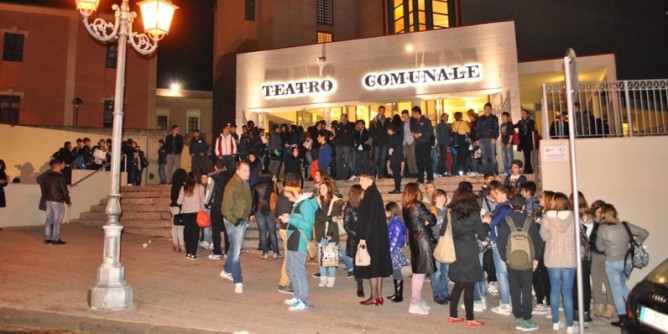 Nella foto: gli studenti all'uscita del Teatro Comunale di Sassari