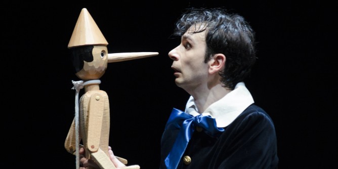La storia di Pinocchio è piena di simboli e riferimenti ad una tradizione magica, come spesso la letteratura popolare: nello spettacolo i diversi livelli di lettura affiorano e si intersecano, la successione degli eventi e le scene descritte nel libro si materializzano sulla scena e Cioni presta corpo e voce al burattino, con una grammatica di movimenti disarticolati, nervosi ed a scatti, come animato da fili invisibili. Intorno a lui agiscono ed interloquiscono gli altri personaggi, in un microcosmo fantastico che assomiglia ad una proiezione onirica: nella scena vuota e scarna gli oggetti appaiono ingigantiti, come in un sogno, in una meravigliosa astrazione. Racconta il regista e drammaturgo Ugo Chiti (che anni fa partecipò alla sceneggiatura di “OcchioPinocchio”, esperimento cinematografico di Francesco Nuti, consapevole “tradimento” della moderna favola): «Pinocchio ha dato movimenti folli e divertiti a tutte le nostre contraddizioni e noi l’abbiamo punito, torturato, con la ferocia insospettabile dei mansueti che pascolano nell’ordine delle cose. Pinocchio, improvvisamente, mi è venuto incontro malmesso e ingrigito, stropicciato e malinconico con lo sguardo già segnato, reduce da chissà quali sevizie dell’età eppure sempre pronto allo sgambetto “sberleffoso” alla risata da “zimbello” di paese… forte del suo legno stagionato ma provato dalle continue trasformazioni. Creatura atrocemente illusa di diventare, un giorno, carne felice, metamorfosi senza storia, cronaca crudele di un risveglio fasullo per ritornare, subito dopo, al primo capitolo di quella “novella atroce” che rinnega la fiaba per uno sguardo sghembo sul mondo». La riscrittura del romanzo per la scena rappresenta «Una visione adulta che cerca di ritrovare lo sguardo sorpreso e turbatamente incantato della lettura infantile».
