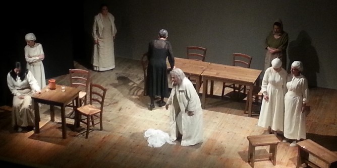 La casa di Bernarda Alba insomma non è altro che una grande finestra su un mondo arcaico, nel quale non c’è spazio per la donna e per suoi sentimenti: repressi, sognati e liberati solo nella notte e nell’immaginazione. Un mondo che per le sue leggi morali, le sue distinzioni sociali e di genere, è simile non solo alla Spagna di García Lorca, ma a tanti altri luoghi, primo fra tutti quello della Sardegna matriarcale, scelta appunto come ambientazione per la vicenda. Senza forzature dunque l’opera dello scrittore spagnolo è stata riadattata con successo, lasciando nei pochi spettatori presenti la consapevolezza di non essere stati gli unici a “non vivere” in quegli anni oscuri e remoti.