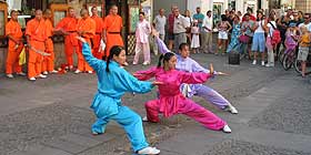 I monaci Shaolin, dopo essere stati accolti in Municipo, hanno offerto un saggio della loro spettacolare velocità nel cuore della città vecchia
