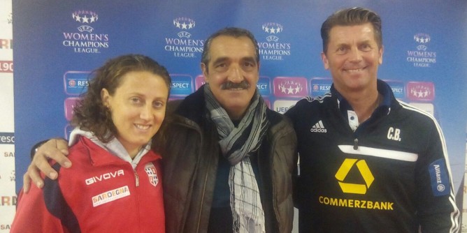 SASSARI - Nella gara di ritorno valida per gli ottavi di finale della Uefa Women’s Champions League la Torres perde in casa contro il Franforte per 0-4 [LEGGI] . Nella conferenza stampa post partita, si sono presentati ai microfoni i tecnici delle due squadre ed il portiere rossoblu Mimma Fazio. Il primo a rispondere alle domande dei cronisti è il mister tedesco Colin Bell: “Dal punto di vista tecnico abbiamo fatto quasi tutto bene e sono molto soddisfatto. Non abbiamo dato spazio alla Torres, abbiamo giocato come volevamo senza dare occasioni da rete alle nostre avversarie. Sia qui sia a Francoforte la Torres ha combattuto con tutti i mezzi a sua disposizione, la prestazione di oggi è sicuramente migliore rispetto a quella di Francoforte”. Il tecnico si rivolge in italiano per le sue ultime considerazioni: “Sono felice di aver vinto ma soprattutto voglio ringraziare la società e la squadra per l’ospitalità. A Francoforte abbiamo avuto modo di conoscerci e qui abbiamo avuto una grande accoglienza; ce ne andiamo dalla Sardegna con un ottimo ricordo e auguro alla Torres le migliori fortune”.