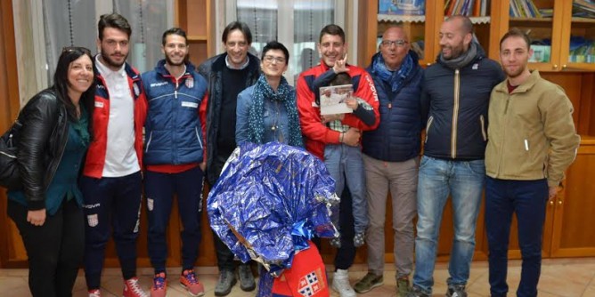 Ai bambini e alle loro mamme, ospitate nel centro, i giocatori rossoblu hanno fatto dono di un uovo di Pasqua gigante, acquistato grazie alla collaborazione della pasticceria Lella Proto di Sassari, di una calendario della Fondazione Torres e di decine di calendari con le effigie di Papa Francesco, dono di un tifoso rossoblu che ha voluto partecipare all'iniziativa.