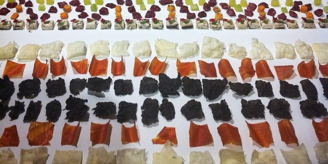 In una serata di grande suggestione per i novanta partecipanti, Asili e Petza, dopo l’introduzione del direttore del Man Lorenzo Giusti e di quello dell’Accademia Casa Puddu Gianfranco Massa, hanno fatto incontrare alta ristorazione ed estetica, combinando al meglio i sapori della ricerca dello chef con il progetto dell'arazzo da mangiare ideato dal grafico. Una rivisitazione dell’arte sarda della tessitura, rielaborata in chiave gastronomica in collaborazione con l’associazione “La strada del vino Cannonau”, tra cibi sospesi in forma di finger food ordinati minuziosamente seguendo la serialità del progetto e percezioni visive delle tessiture grafiche.