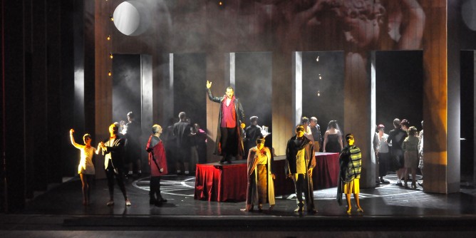I mille che hanno affollato il teatro sono stati ripagati dall’originale idea del talentuoso regista catalano Paco Azorìn. Il suo Don Giovanni è atemporale e per questo condannato ad essere se stesso per l’eternità: si spiega così il grande orologio disteso sulla scena e sopra cui ruota la struttura scenografica, di volta in volta adornata dalle suggestive immagini di Alessandro Arcangeli e del light designer Pedro Chamizo. Per questo, è impossibile collocare il Don Giovanni in un preciso momento storico ed i costumi di Domenico Franchi tratteggiano più il carattere dei personaggi che il contesto cronologico in cui si svolge la vicenda. Con una sola, fondamentale eccezione: l’inizio e la fine dell’opera, in cui il protagonista muore per poi rinascere, indossando un tipico vestito spagnolo, lo stesso, del diciassettesimo secolo. Il riferimento è all’antenato del Don Giovanni mozartiano, quel Burlador de Sevilla nato dalla penna di Tirso de Molina nel 1612. E quando, alla fine dell’opera, il nobile seduttore viene condannato, ancora una volta, a sprofondare negli inferi trascinato dalla Statua del Commendatore, il tempo corre indietro, nel grande display scenografico, dal nostro 2015 fino a fermarsi proprio agli inizi del Seicento.